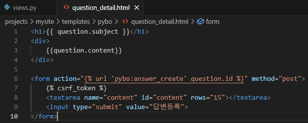 form태그 밑에는 항상 {% csrf_token %}태그를 항상 위치시켜야 한다.