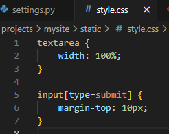 <link rel="stylesheet" type="text/css" href="{% static 'style.css' %}">